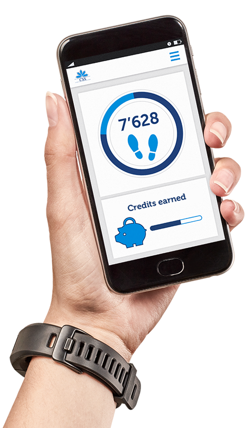 For each day in which you walk and register 10,000 steps, you will be credited CHF 0.40. Activity trackers from FITBIT®, Garmin® and Jawbone® are all compatible with myStep.